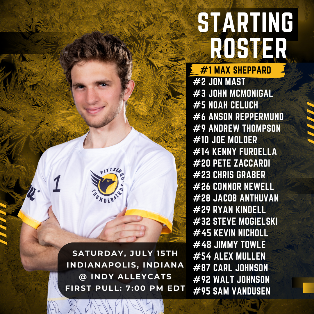 Carl Johnson (35 goals, 11 assists, eight blocks), Max Sheppard (33 goals, 44 assists, 17 hockey assists), Jimmy Towle (17 goals, 11 assists, 18 hockey assists), Mast (23 assists, 18 hockey assists), and Mogielski (13 blocks) are on the T-birds active roster for Saturday. The trio of Anson Reppermund, Jacob Anthuvan, and Sam VanDusen are questionable. Pittsburgh is seventh in the AUDL in blocks with 104.