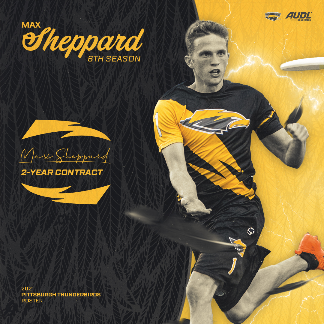 PITTSBURGH – The Pittsburgh Thunderbirds lock up their superstar, AUDL All-Star MVP and AUDL MVP Runner-Up Max Sheppard, to a two-year contract, covering the 2021 and 2022 AUDL Seasons. The two-year deal is the first of its kind for the Thunderbirds organization.
