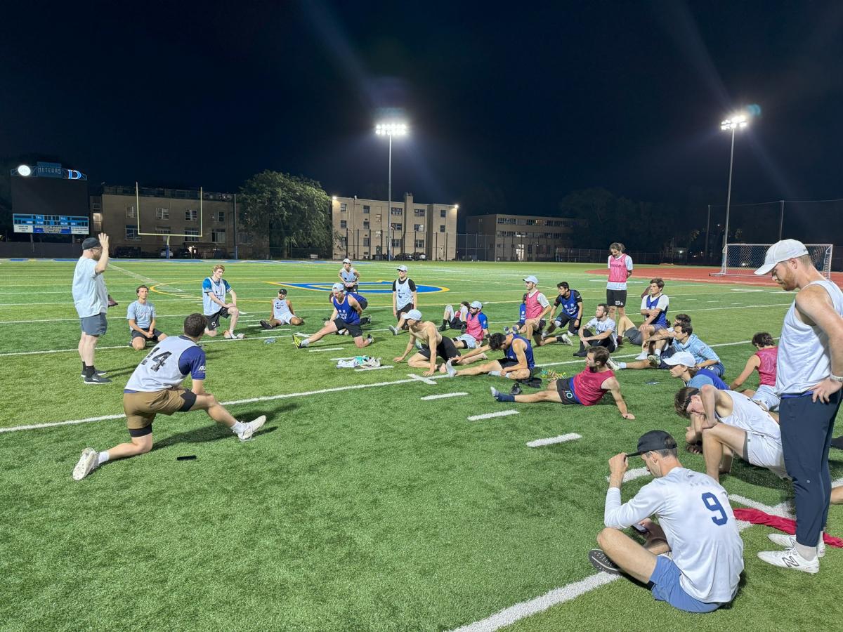The team listened to Van Nostrand during their post-practice stretch as he highlighted the importance of a balanced training regimen that includes both strength and aerobic conditioning to enhance the players' endurance, agility, and power on the field. “The determinants of performance are similar to other sports with a similar profile, such as soccer,” said Van Nostrand. “The three big things are the aerobic-alactic energy systems, reactive strength, and power and explosiveness. We want to prioritize these 3 to put together a training program that is focused, concise, and effective.” He then went on to provide practical advice for the team on how to structure workouts to maximize performance and minimize injury risks.